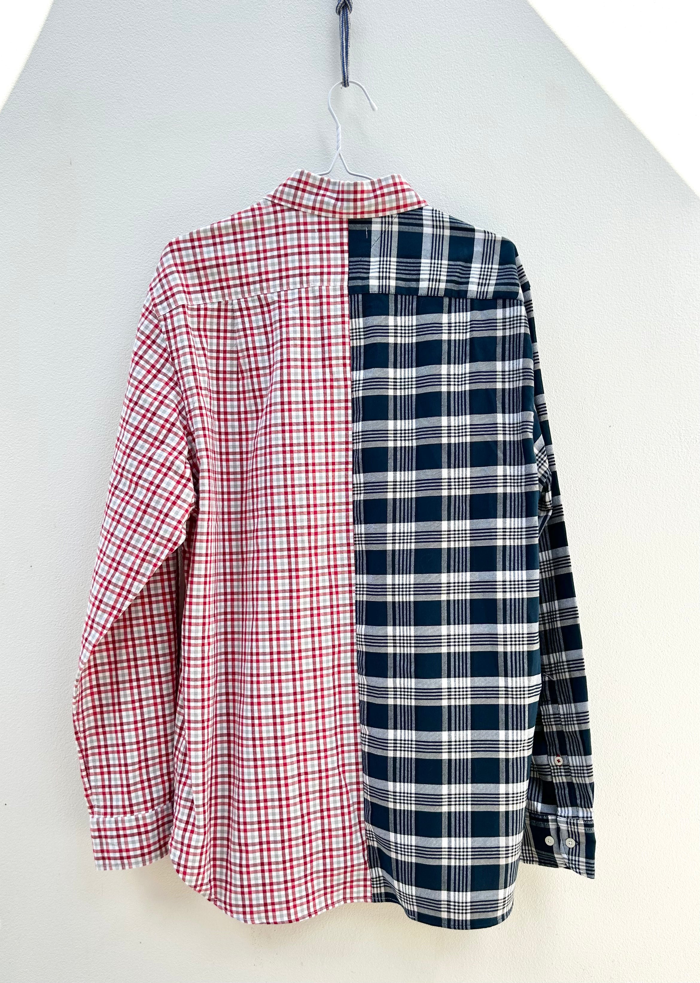 - Handcrafted from two upcycled cotton shirts