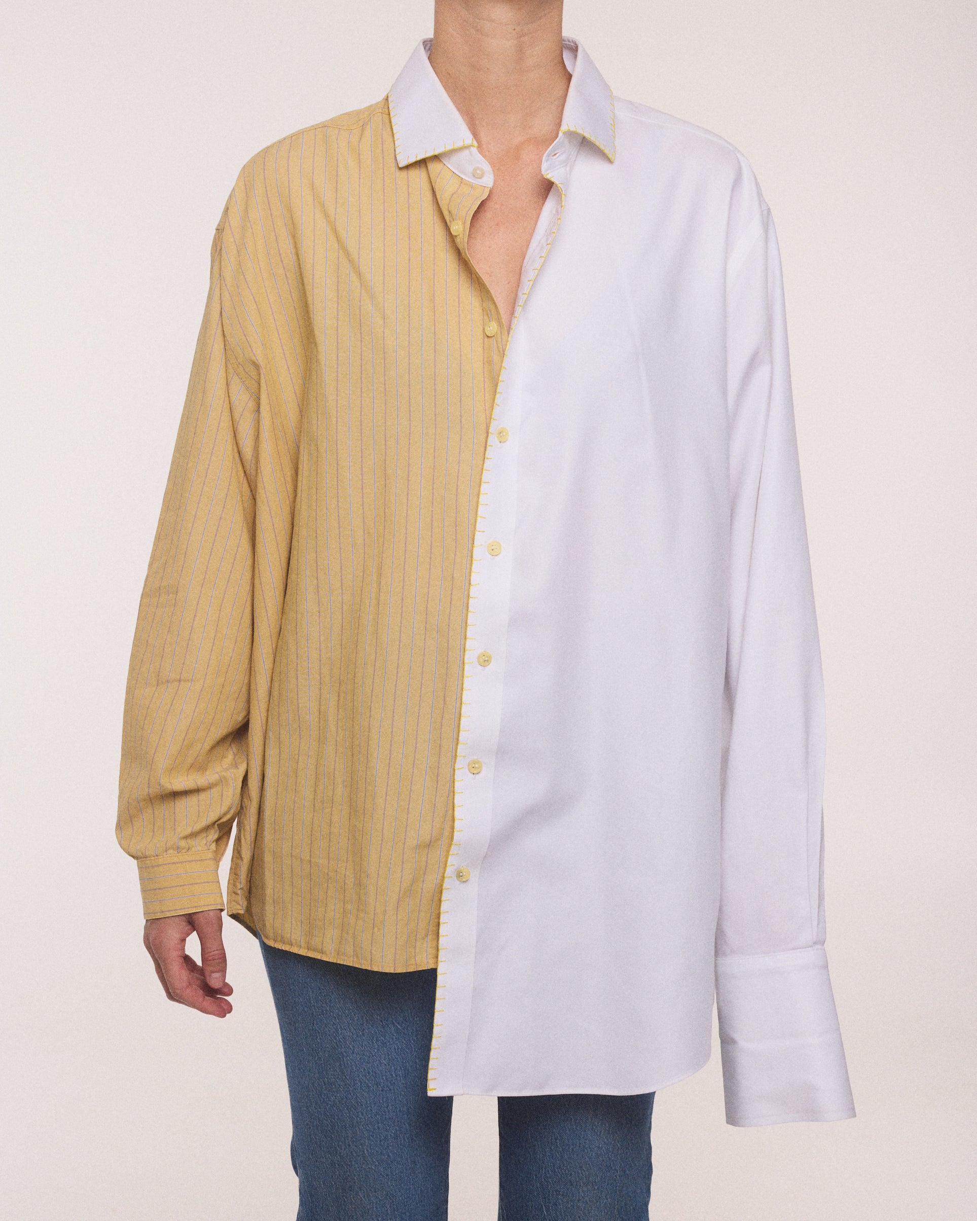 - Handcrafted from two upcycled cotton shirts