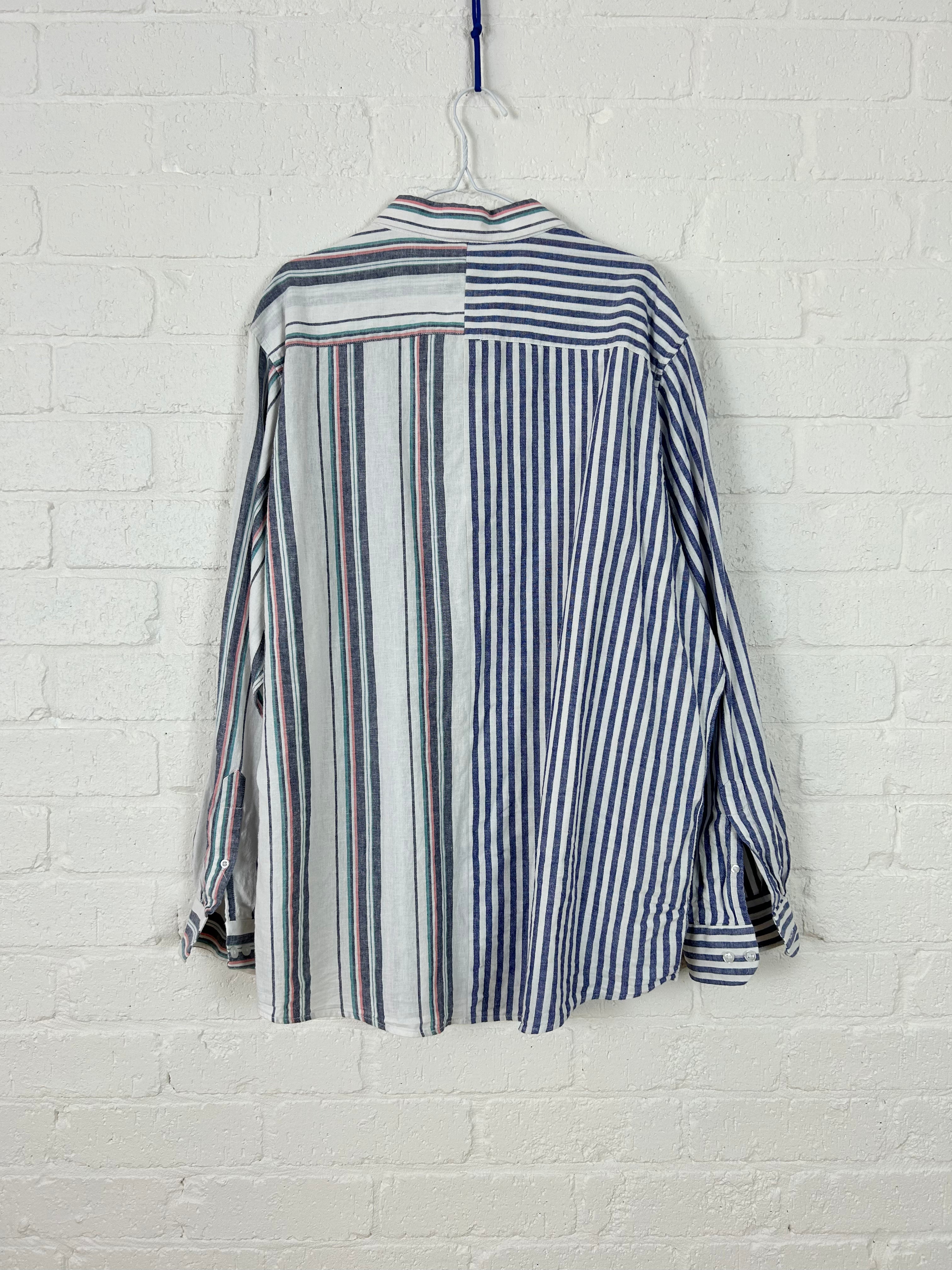 Handcrafted from two upcycled linen shirts